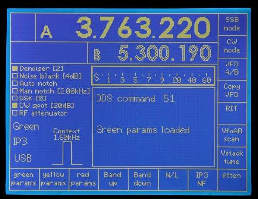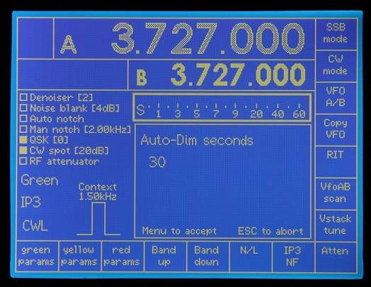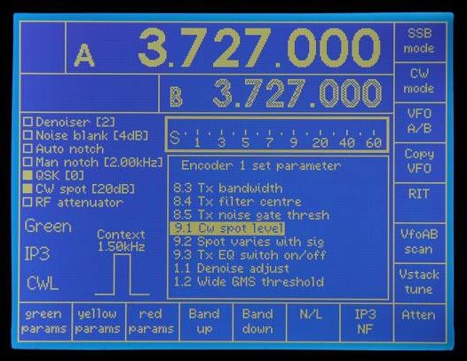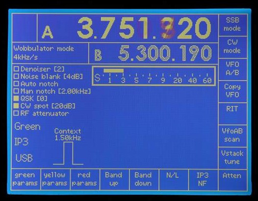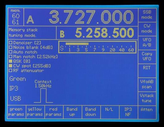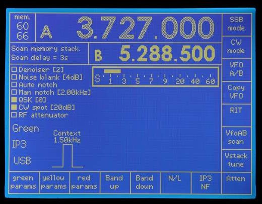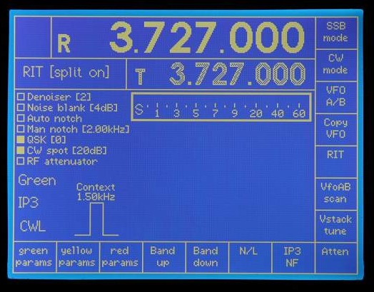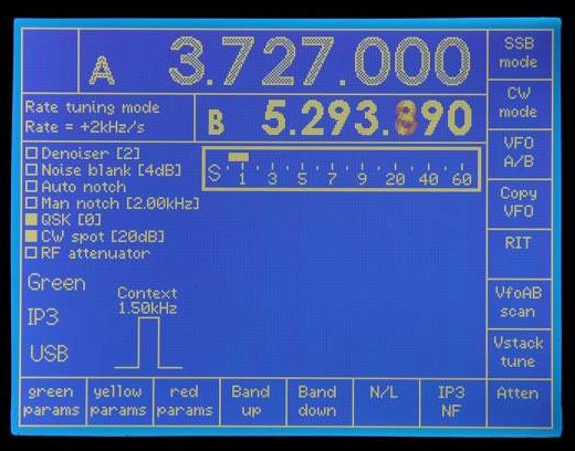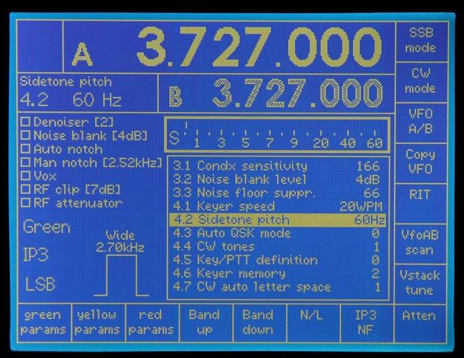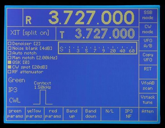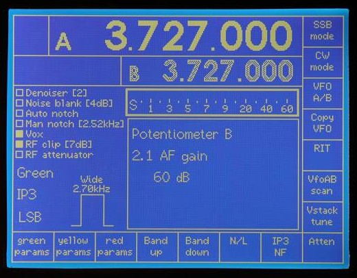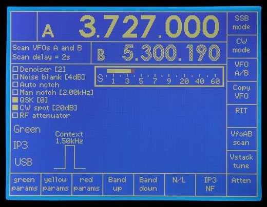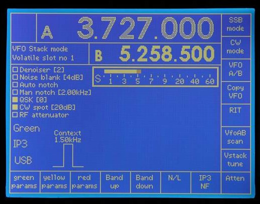 Note the use of white and grey to indicate which VFO is current (white).