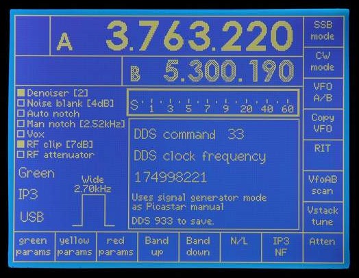 DDS33 keyed (setting DDS clock). Operates as Picastar manual except no reboot.