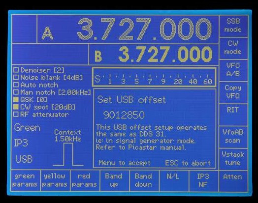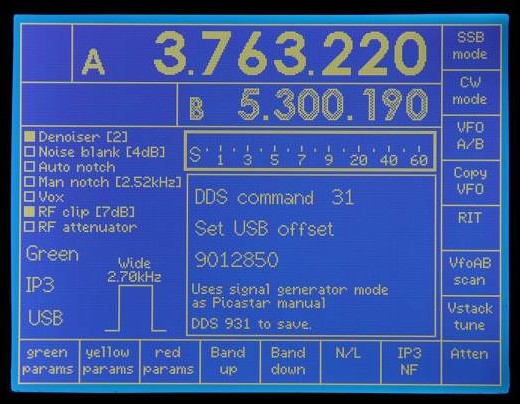 DDS31 keyed (setting USB offset). Operates as Picastar manual except no reboot.