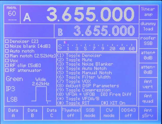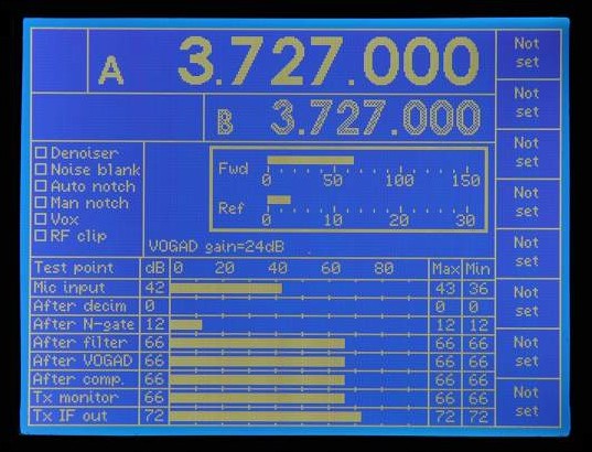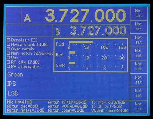 DSP monitor display on transmit. Power meter is reduced to Fwd and Refl with no SWR.