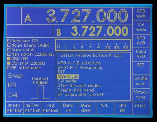 Transmit screen. The user-assigned buttons are assigned separately for transmit and receive.