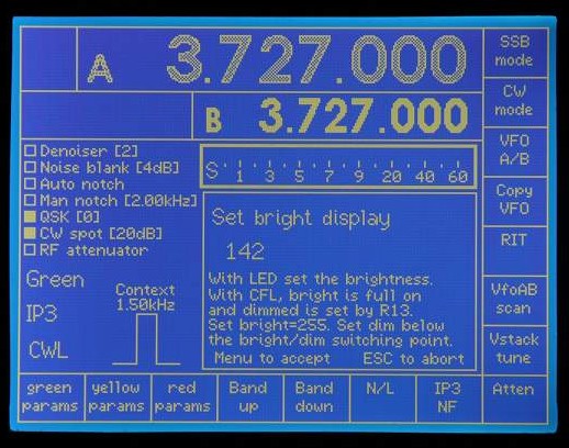 Configuration menu - Setting bright display level.