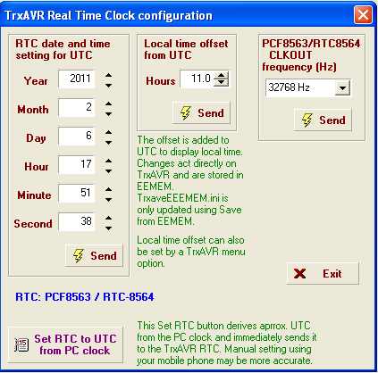 The Send buttons send to the RTC. These setting are not stored elsewhere.