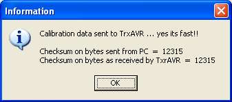 The calibration will be transmitted in less than a second followed by a confirmation message.